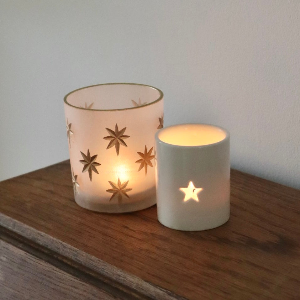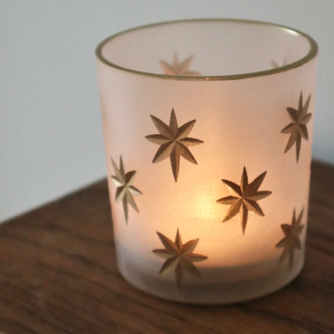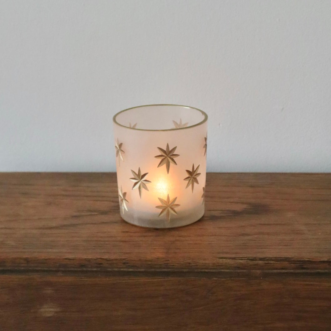 Gold Star Frosted Tea Light Holder