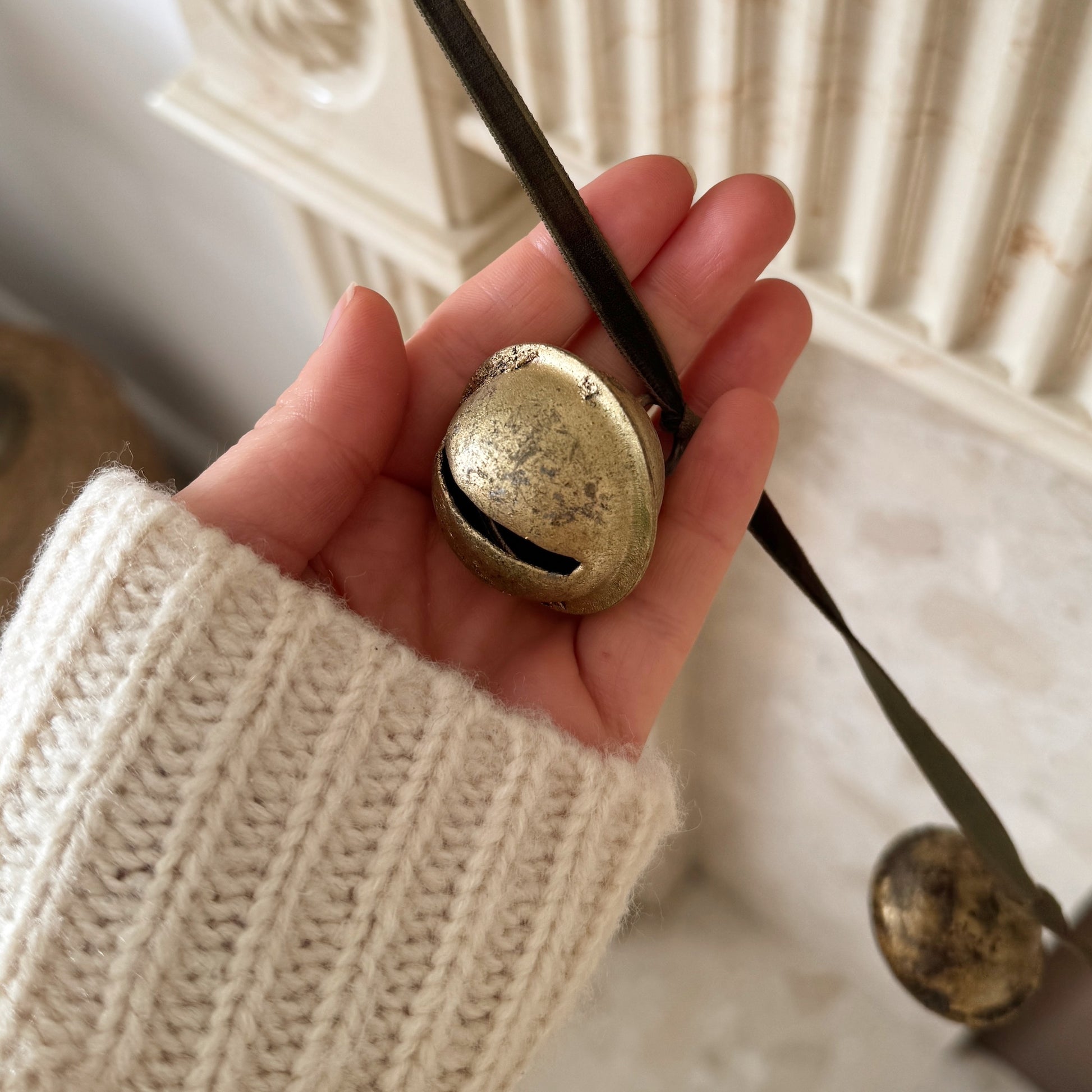 Bring a touch of English countryside charm to your home with this handcrafted festive bell garland. Antique brass bells on green velvet ribbon, perfect for a slow living Christmas.
